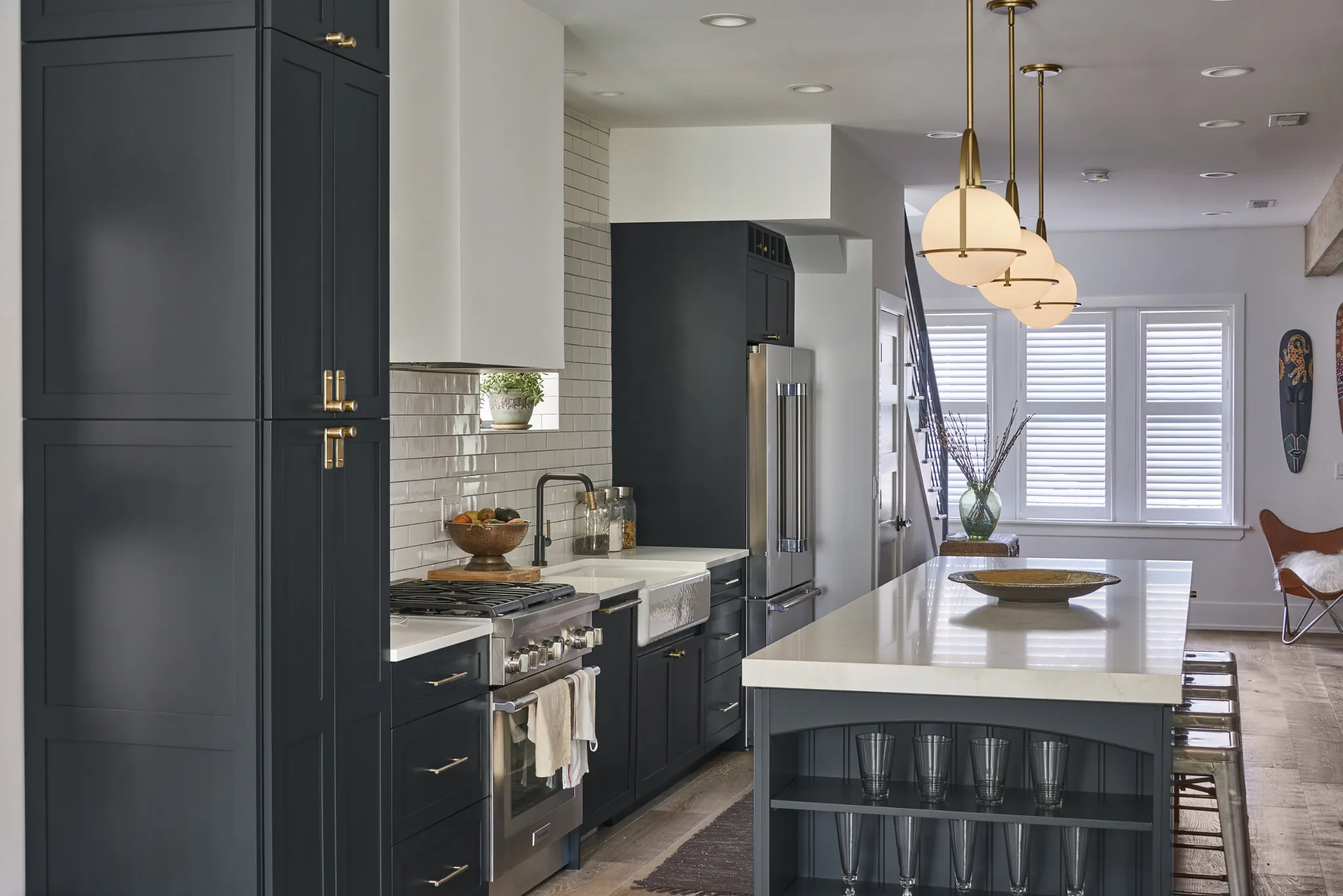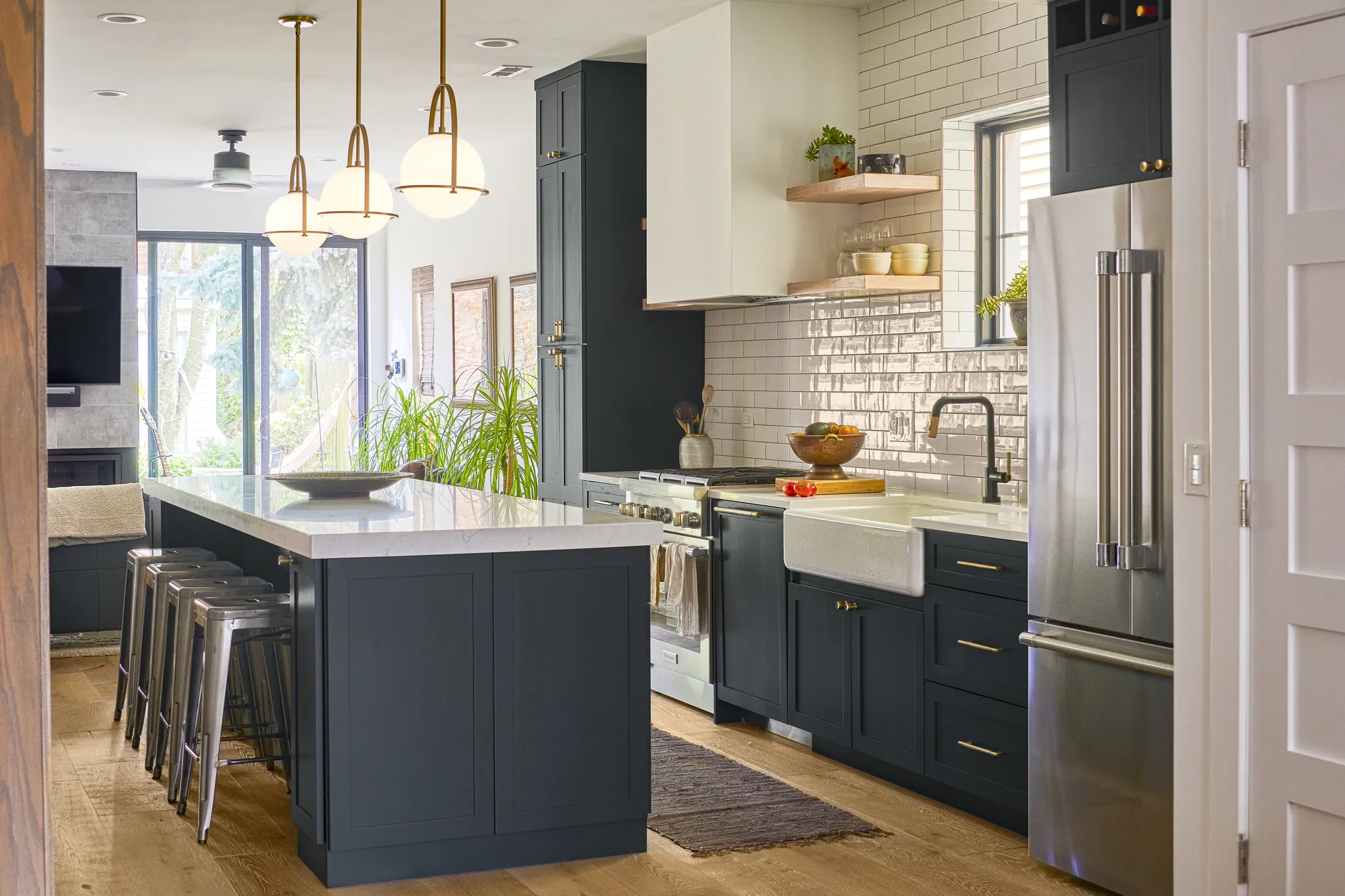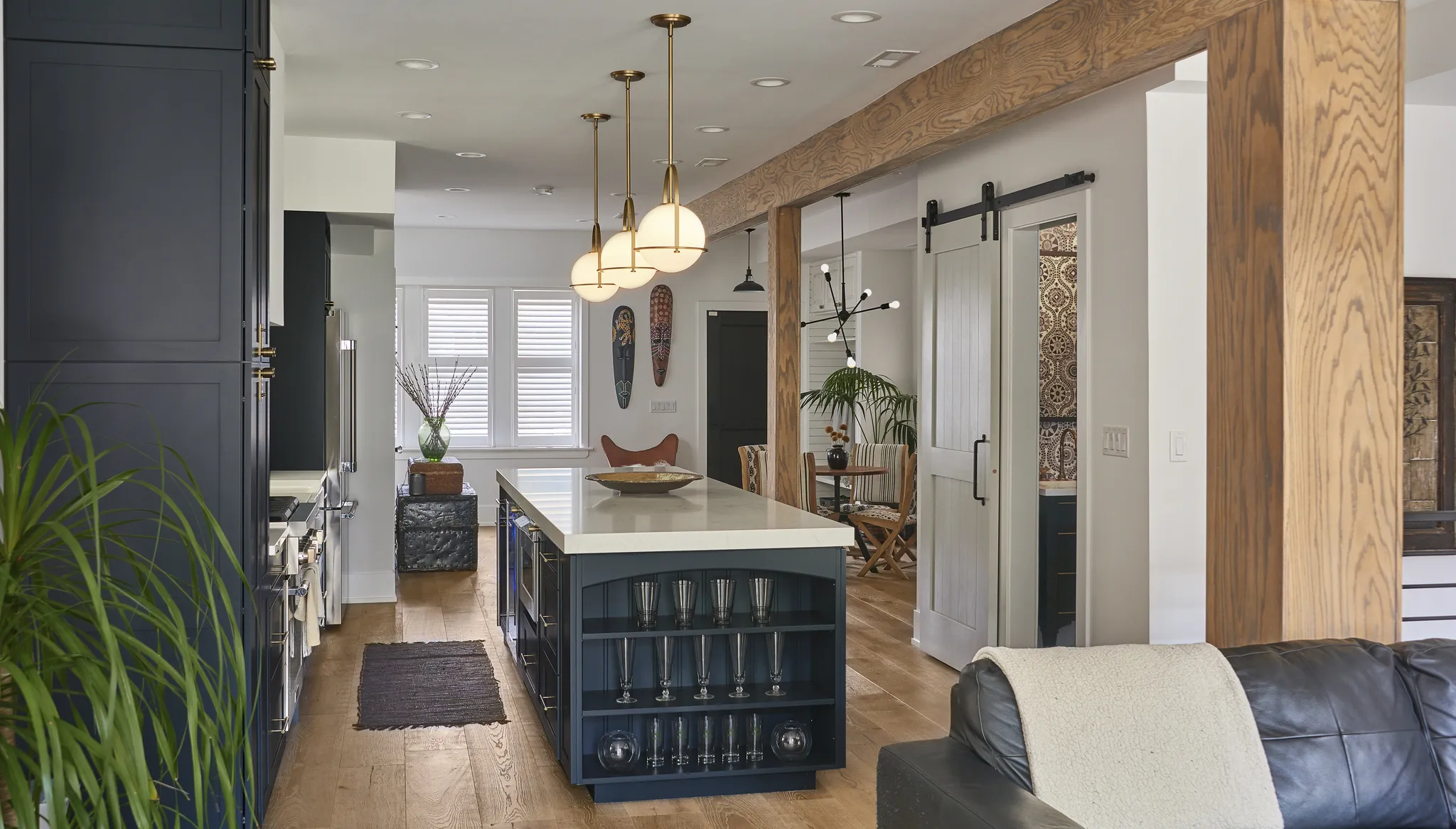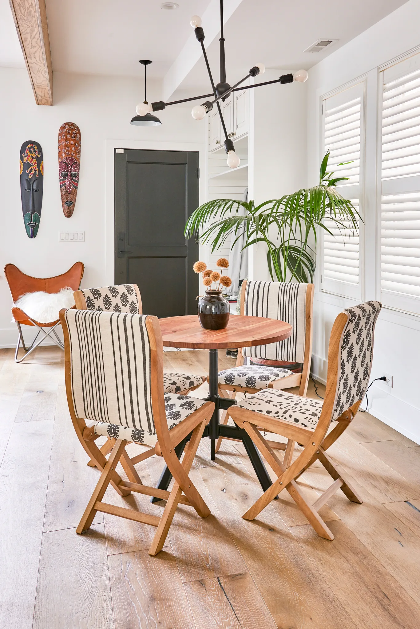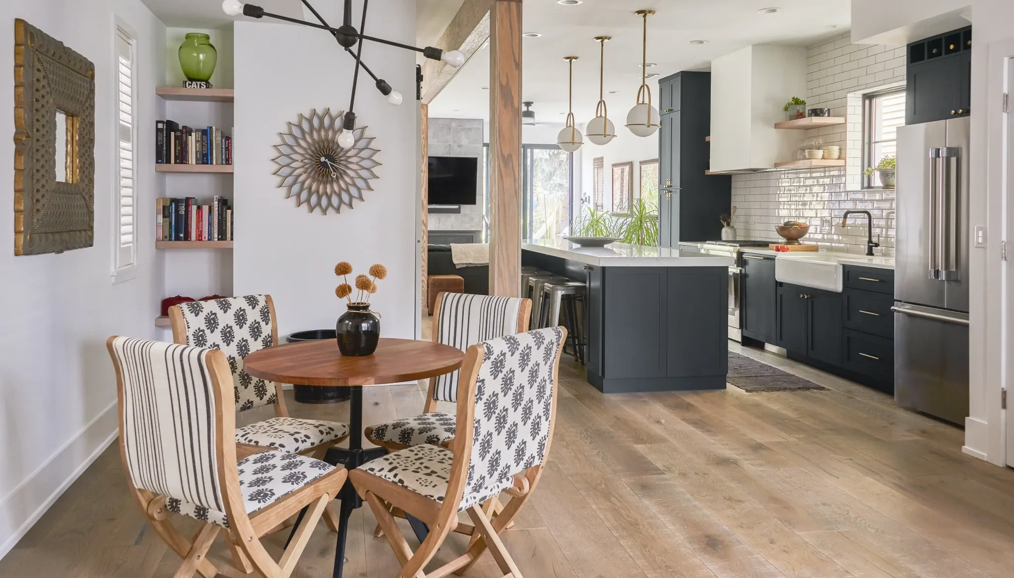 Step into this remodeled home with Modern inspired aesthetics. The kitchen features dark wood cabinets, stone countertops, and desert-inspired handcrafted tiles. The master bath boasts cool blues with a custom tile mosaic. The living room showcases bold colors and patterns with textiles and wall decor.